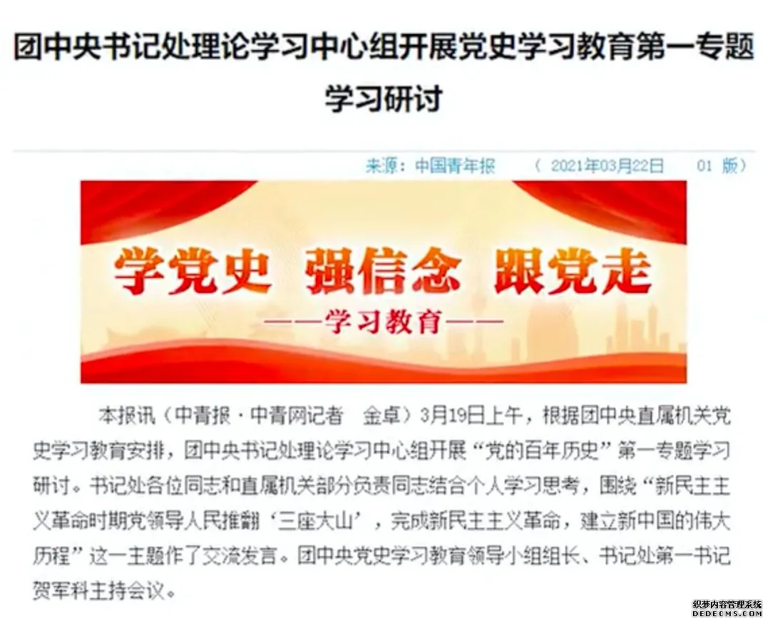http://www.sznews.com/news/content/2021-03/29/content_24084481.htmhttp://www.sznews.com/news/content/mb/2021-03/29/content_24084481.htm共青团中央3月19日上午,根据团中央直属机关党史学习教育安排,团中央书记处理论学习中心组开展“党的百年历史”第一专题学习研讨。1/enpproperty-->
