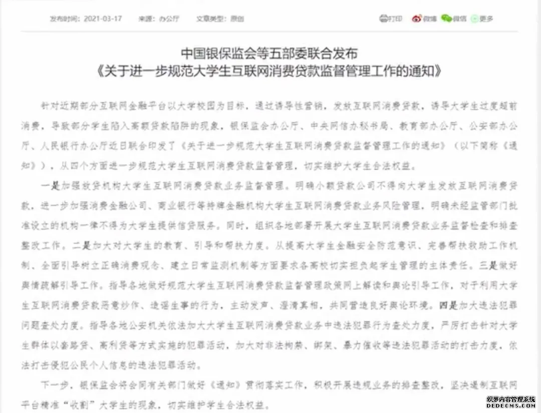 据银保监会网站17日消息,银保监会等五部委联合发布《关于进一步规范大学生互联网消费贷款监督管理工作的通知》,进一步规范大学生互联网消费贷款监督管理,切实维护大学生合法权益。