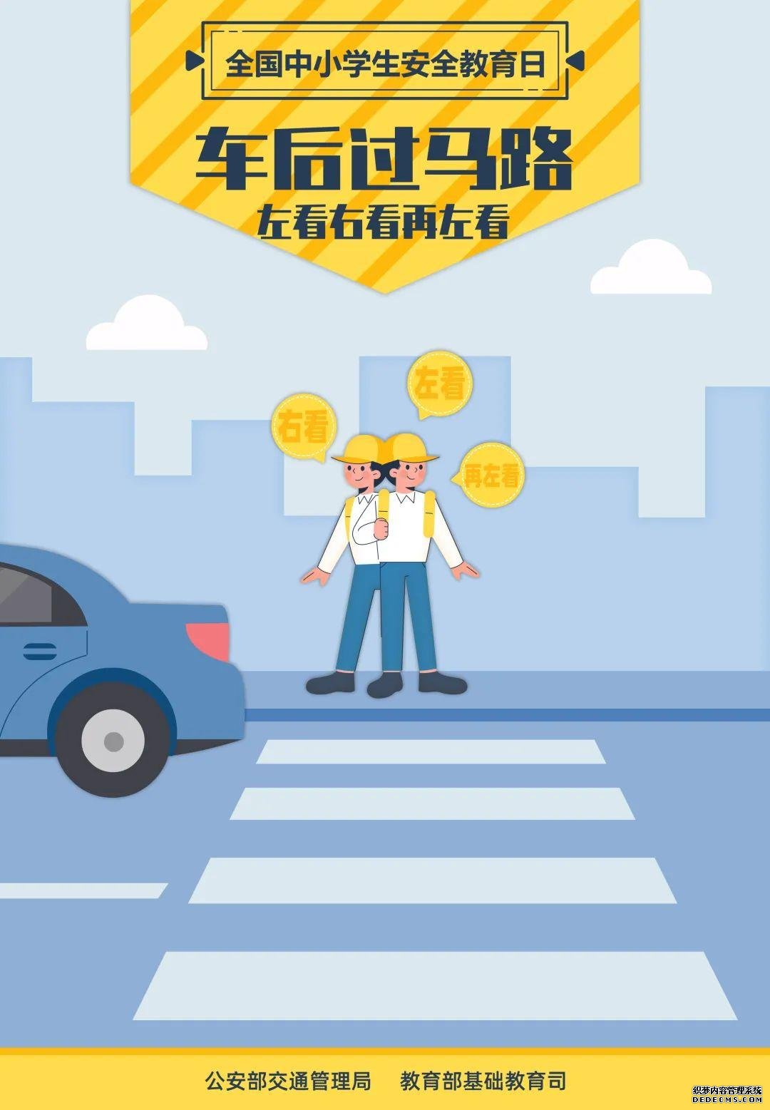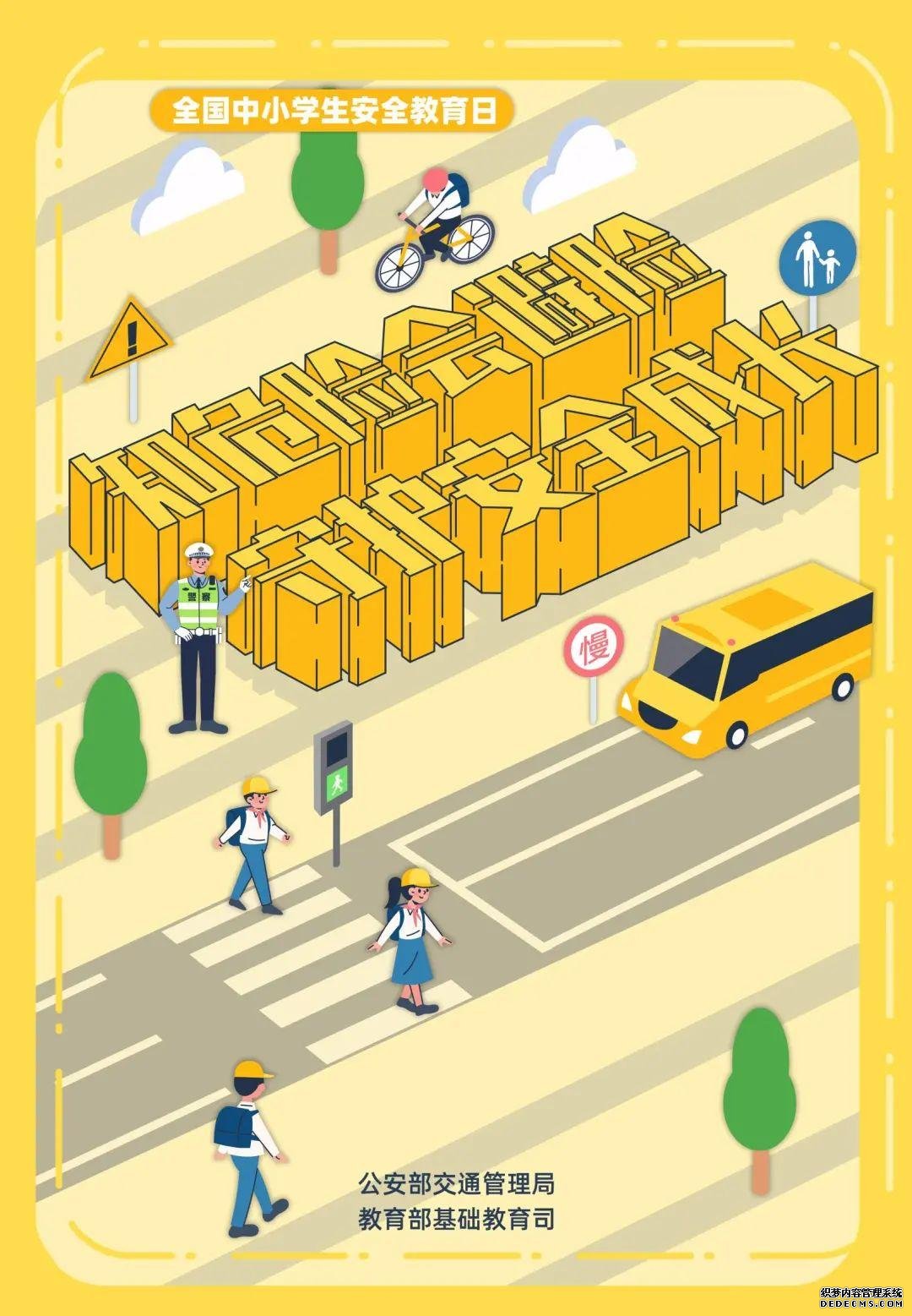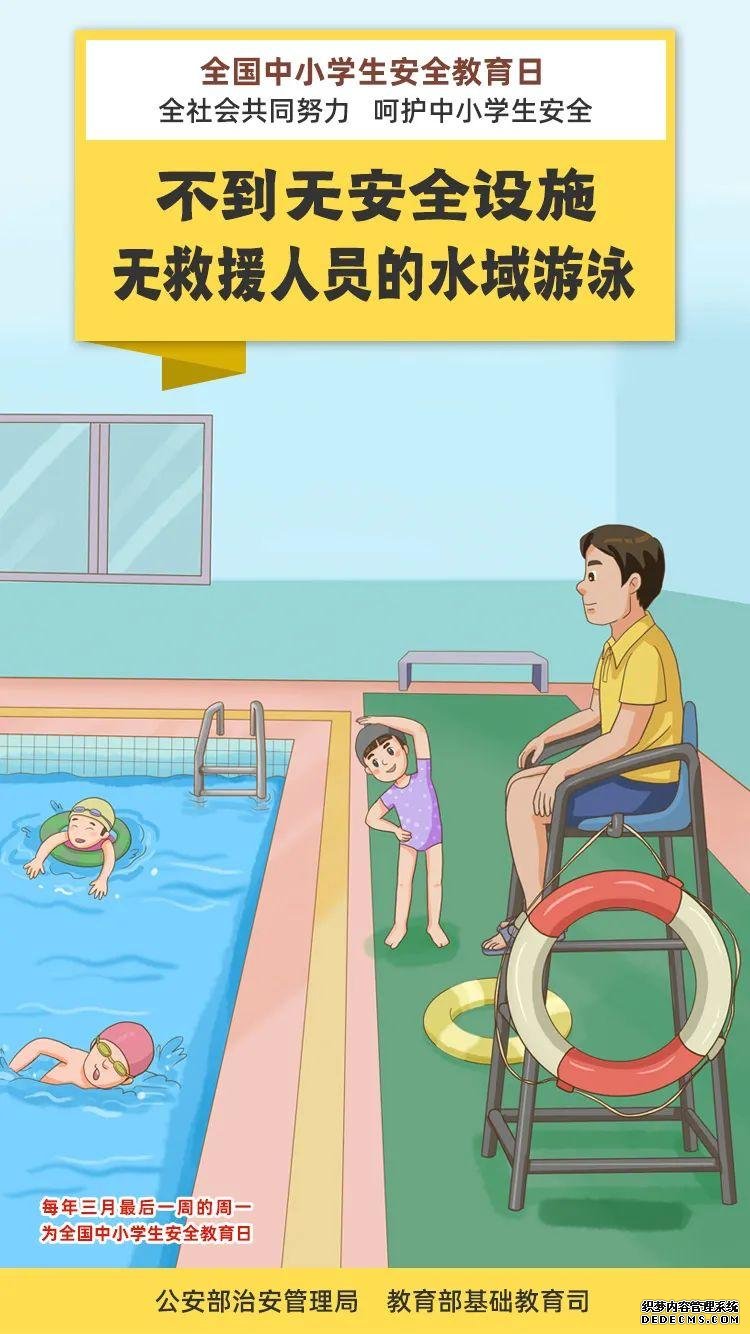 3月29日是第26个全国中小学生安全教育日。教育部日前印发通知,就今年全国中小学生安全教育日活动进行部署,要求各地各校结合实际,集中开展一次专题安全教育、组织一次应急疏散演练、开展一次国家安全教育、开展一次集中宣传活动。此外,还联合公安部制作了全国中小学生安全教育日系列海报,涵盖防恐防暴、交通安全、防欺凌、防溺水等4个方面,跟小编一起来学习——