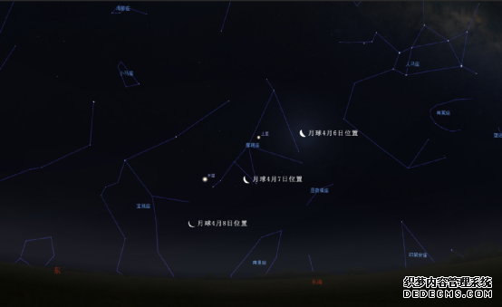4月6-8日清晨双星伴月位置示意图(图源:stellarium)