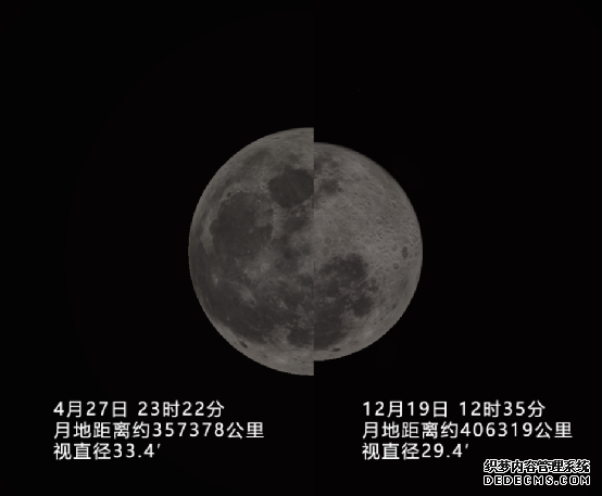 2021年第二大满月与最小满月对比示意图(图源:stellarium)