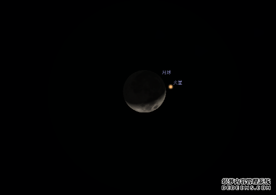 4月17日深圳地区火星合月模拟图(图源:stellarium)