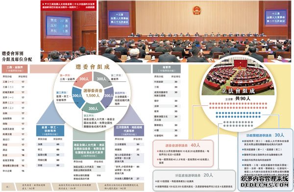 立法会方面,新修订的附件二列明,香港特区立法会议员每届90人。通过选举委员会选举、功能团体选举、分区直接选举三种方式分别产生40人、30人、20人。