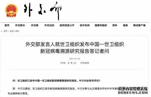 世卫组织发布中国—世卫组织新冠病毒溯源研究报告后,外交部也对此回应。