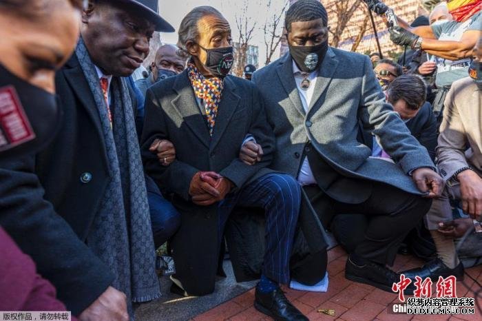 当地时间3月29日,美国“弗洛伊德案”在明尼阿波利斯正式开庭审理,被控杀害非裔男子弗洛伊德的美国前明尼阿波利斯警员、白人男子肖万出庭受审。在庭审开始前,死者家属和律师在法院前单膝跪地,向死者乔治·弗洛伊德致哀。