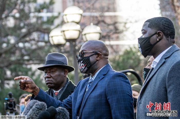 当地时间3月29日,美国“弗洛伊德案”在明尼阿波利斯正式开庭审理,被控杀害非裔男子弗洛伊德的美国前明尼阿波利斯警员、白人男子肖万出庭受审。图为死者家属和律师在法院外。