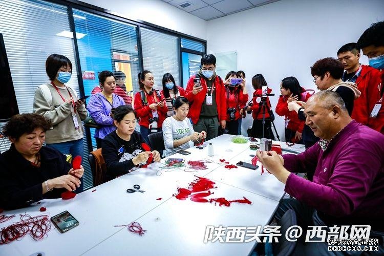 西部网讯(记者 刘望) 一折、一卷、六朵花瓣整齐罗列,细铁丝紧紧绕圈固定,一朵火红的手工花便成型了。“这个是我们的一些手工艺品,都是有延安特色的,如果你们想学的话,随时来,我们这里免费培训。”3月30日,在延安市宝塔区电商直播融合孵化服务中心的直播间里,60岁的退休工人董智玲正在直播间里给网友直播手工艺品制作,引来了众多记者的围观。