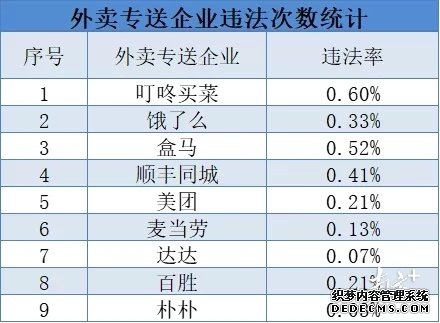 外卖专送企业违法率