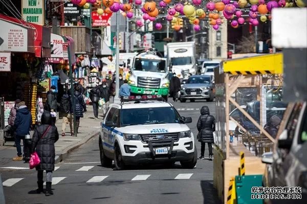 2021年3月19日,警车在美国纽约唐人街巡逻,枪击案发生后,纽约市在多个亚裔聚居区加派警力巡逻。图|新华社