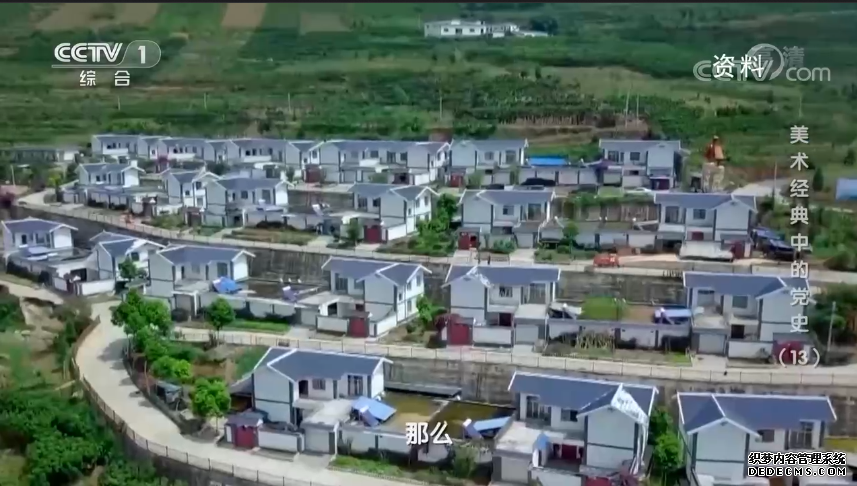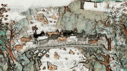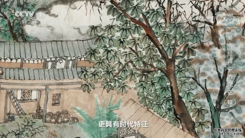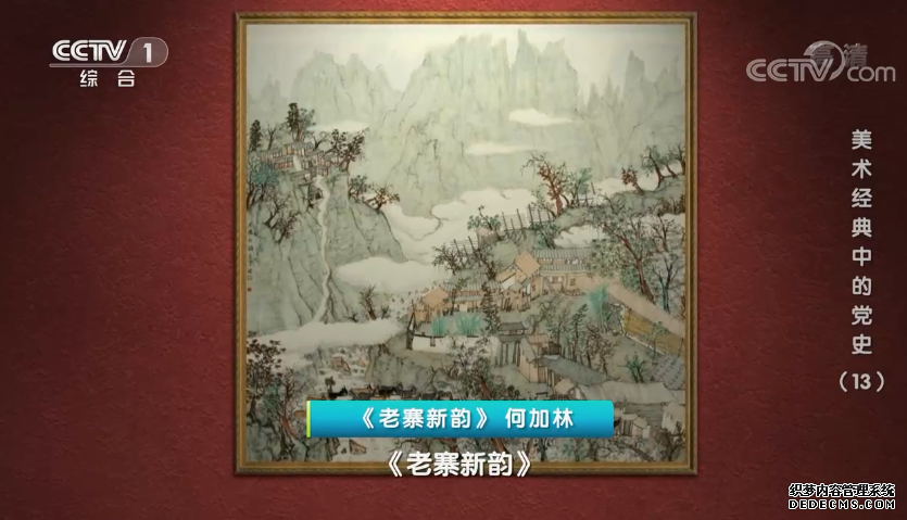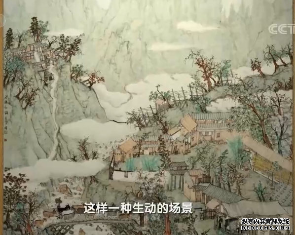 “画家没有采用传统山水画常用的写实技法,而是在采风后,通过合理想象撷取了现实生活中的零散元素,把当地各种符号化的特点综合起来,表现出栩栩如生的场景。整个画面层次丰富,使百年老寨焕发出新时代的气息。”
