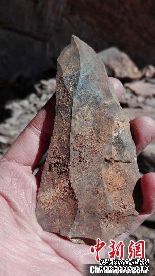 从加莫哈拿山北岩棚遗迹挖掘出的一个石头工具。图片来自Jayne Wilkins,施普林格·自然供图