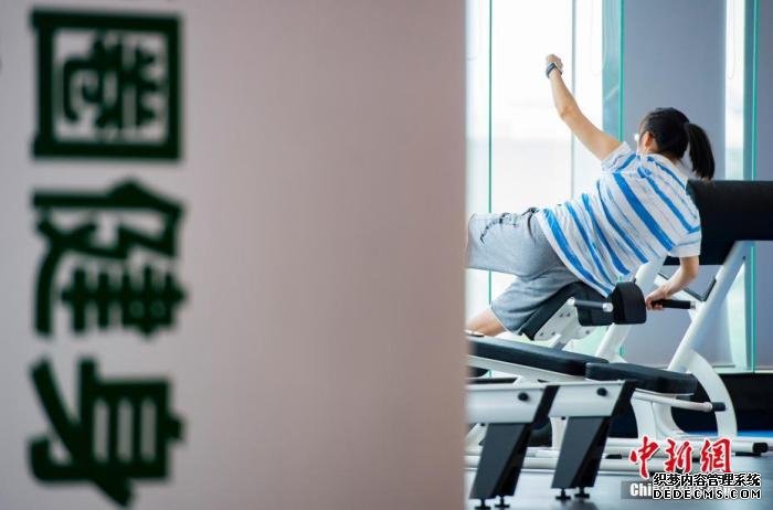 一位市民在北京市海淀区腾达大厦内的一家健身房内锻炼。新社记者 侯宇 摄